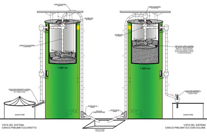 Prodotti > Silos per gli impianti di biogas SILOS PER GLI IMPIANTI DI BIOGAS La Silos Samarani, oltre a poter realizzare tutte le opere edili necessarie per la costruzione di impianti di biogas ( fermentatori coibentati, vasche di stoccaggio, Silos orizzontali ecc…), propone il Silos verticale dosatore di biomasse per impianti di biogas. Ogni Silos dosatore può contenere 1000 Ton. di biomasse. Il Silos è dotato di una speciale fresa estrattrice atta al carico uniforme dell’insilato e alla estrazione con invio della biomassa pesata direttamente al fermentatore (digestore). Il Silos può essere caricato in qualsiasi momento, anche durante la fase di estrazione, con una velocità di carico dai 50/100 Ton/ora. L’impianto di estrazione diretto al fermentatore ha una potenzialità di consumo energetico molto basso, pari 15/20 Kw/ora. Tutte le operazioni di carico del Silos dosatore sono automatiche e lo scarico può essere programmato pure automaticamente e dosato nella quantità di estrazione desiderata. La grande capacità di stivaggio (1000 Ton.) può garantire all’impianto di biogas molti giorni di autonomia, facendo risparmiare i continui lavori giornalieri di estrazione della biomassa dai Silos orizzontali al dosatore che, mediamente, ha una capacità massima di circa mc.50. Per piccoli impianti di biogas alcuni Silos dosatori possono fare anche da stoccaggio primario della biomassa. Nei grandi impianti di biogas il Silos dosatore grazie alla sua grande capacità di carico automatico 50/100 Ton/ora può concentrare in un solo giorno le operazioni di trasferimento della biomassa dalle trincee di stoccaggio al dosatore. |